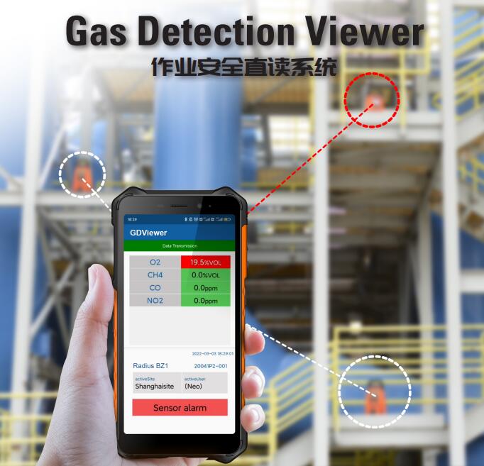 系統無線連接Ventis Pro5氣體檢測儀,利用LENS技術組成本地無線網絡,在防爆手機上直接查看任意一臺設備的氣體信息,并接收實時報警推送。借助GD Viewer直讀系統的攝像功能和4G/5G/WiFi數據傳輸功能,實現對受限空間作業現場的無線實時視頻監控,解決遠程監看難題。