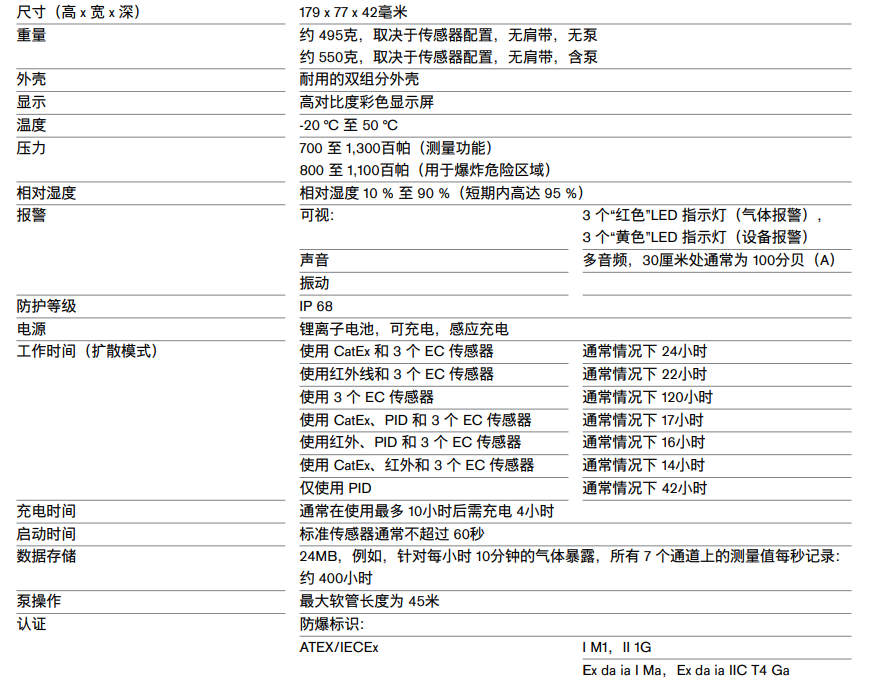如果出現(xiàn)報警情況,X-am 8000 會亮起彩色 LED 報警指示燈、發(fā)出響亮的喇叭聲(30厘米處為 100分貝 (A))以及明顯的振動