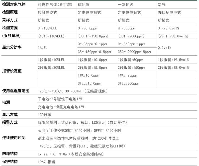 檢測對象: 可燃性氣體丨硫化氫丨一氧化碳丨氧氣