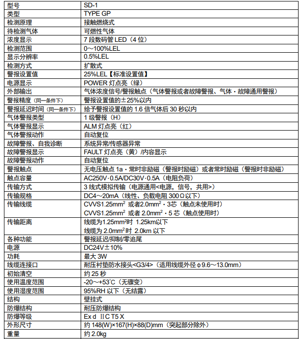 SD-1(Type GP) | 催化燃燒式 | 擴散式 |